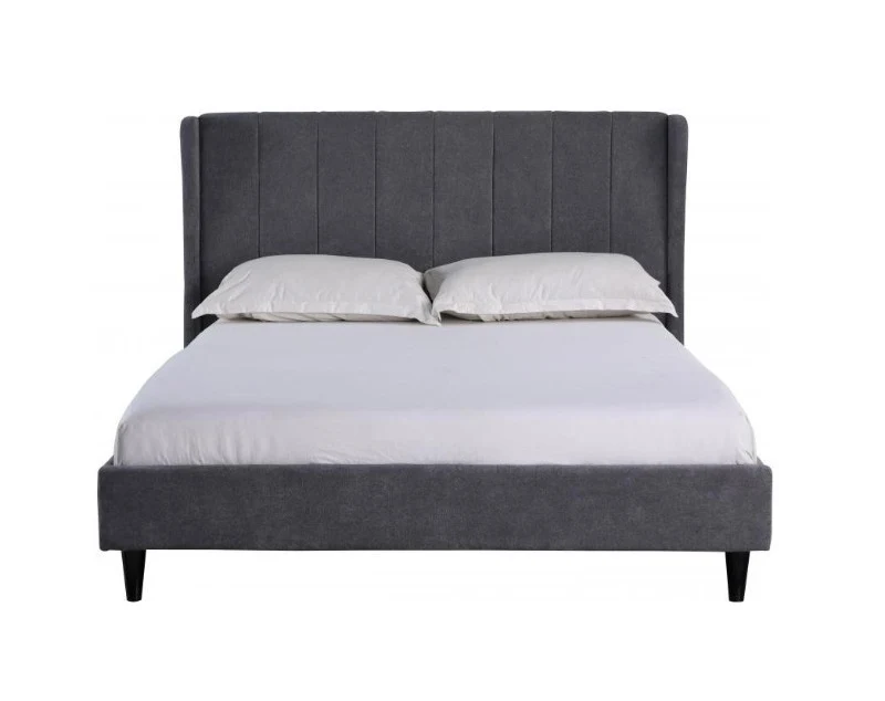 Contemporary, soft touch dark Grey fabric bed with slatted base.