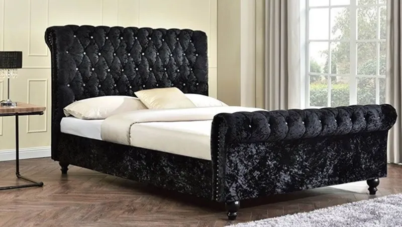 Opulent sleigh bed frame, available in our large selection of colours and several fabrics (see swatches).