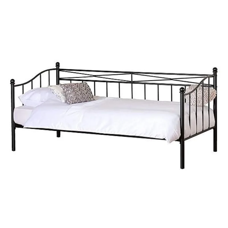 The Pandora Day Bed is a stylish sofa by day and a single guest bed by night. It features a traditional metal design that will make a welcome addition to any home. Finished in black, this day bed will complement any room setting. The slats on this bed are made from laminated wood.