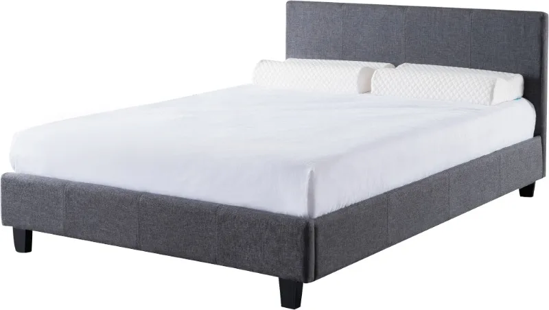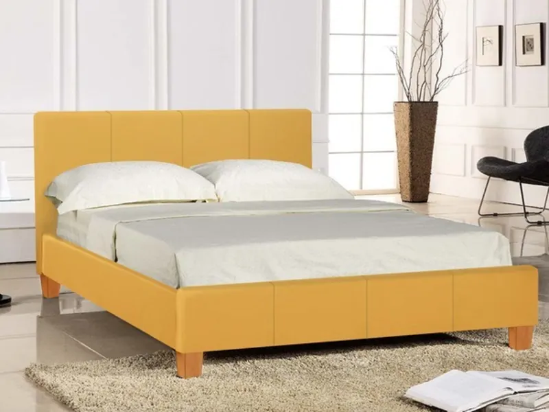 The Prado has a panelled design on the bed ends, the frame has a low footboard and modern feel. Upholstered in a bright mustard fabric, Petrol Blue or Grey.