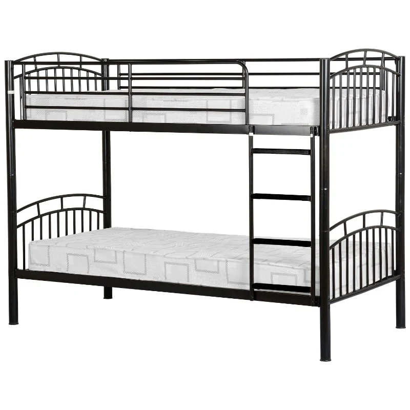 This classic designed bunk bed features a strong metal build with metal detailing and a sturdy ladder. Can be split into 2 separate single beds.